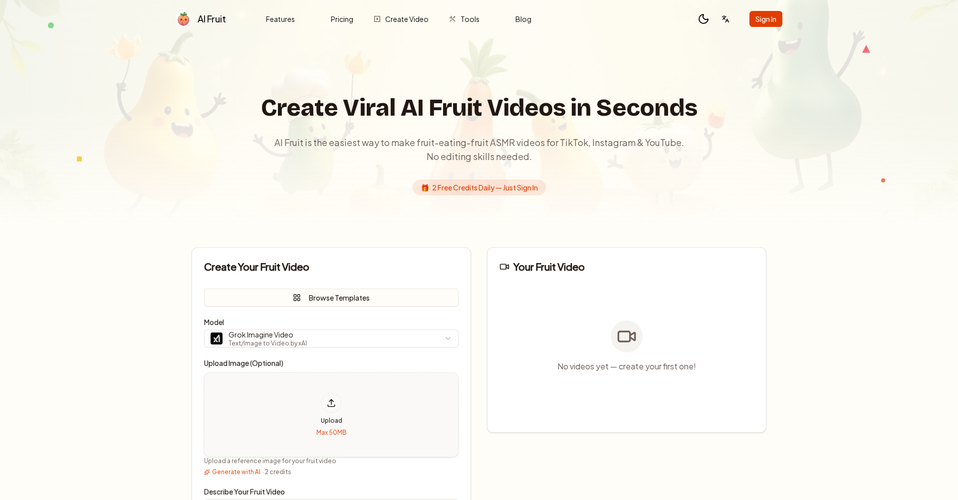 AIFruit is an AI-powered platform for creating viral, short-form fruit-character videos with synchronized ASMR sound effects for TikTok and Reels.