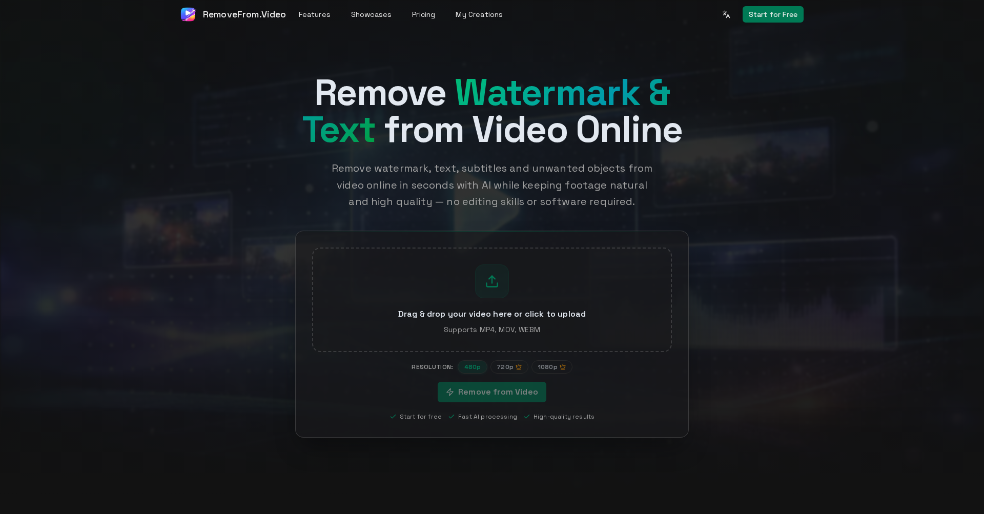 An AI-powered online platform to naturally remove watermarks, logos, text, and unwanted objects from videos using advanced video inpainting technology.